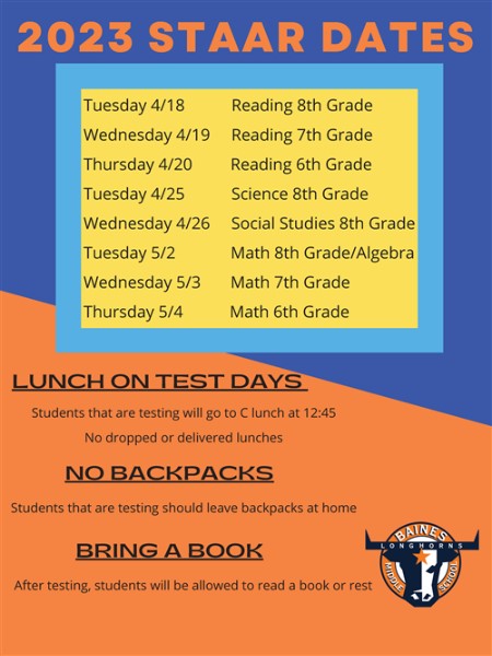 The input consists of various phrasings of questions relating to the STAAR testing schedule for 8th grade in Texas in …
